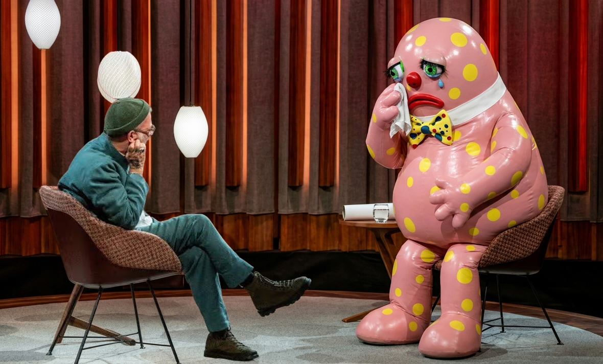 MR BLOBBY has been widely praised for his courage and vulnerability following an emotional appearance on The Tommy Tiernan Show last Saturday, during which the former children’s entertainer opened up about his struggles for the first time in what many are describing as “the most heartbreaking interview of the year.”
